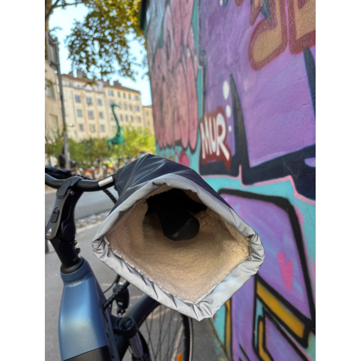 Nos manchons de vélo se fixent au guidon de votre bicyclette (ou tout guidon courbé) grâce à un système de boutons pressions, ce qui leur permet d’épouser parfaitement la forme de votre guidon et de s’adapter à tous les câbles de vélos, notamment les câbles de vélos électriques.