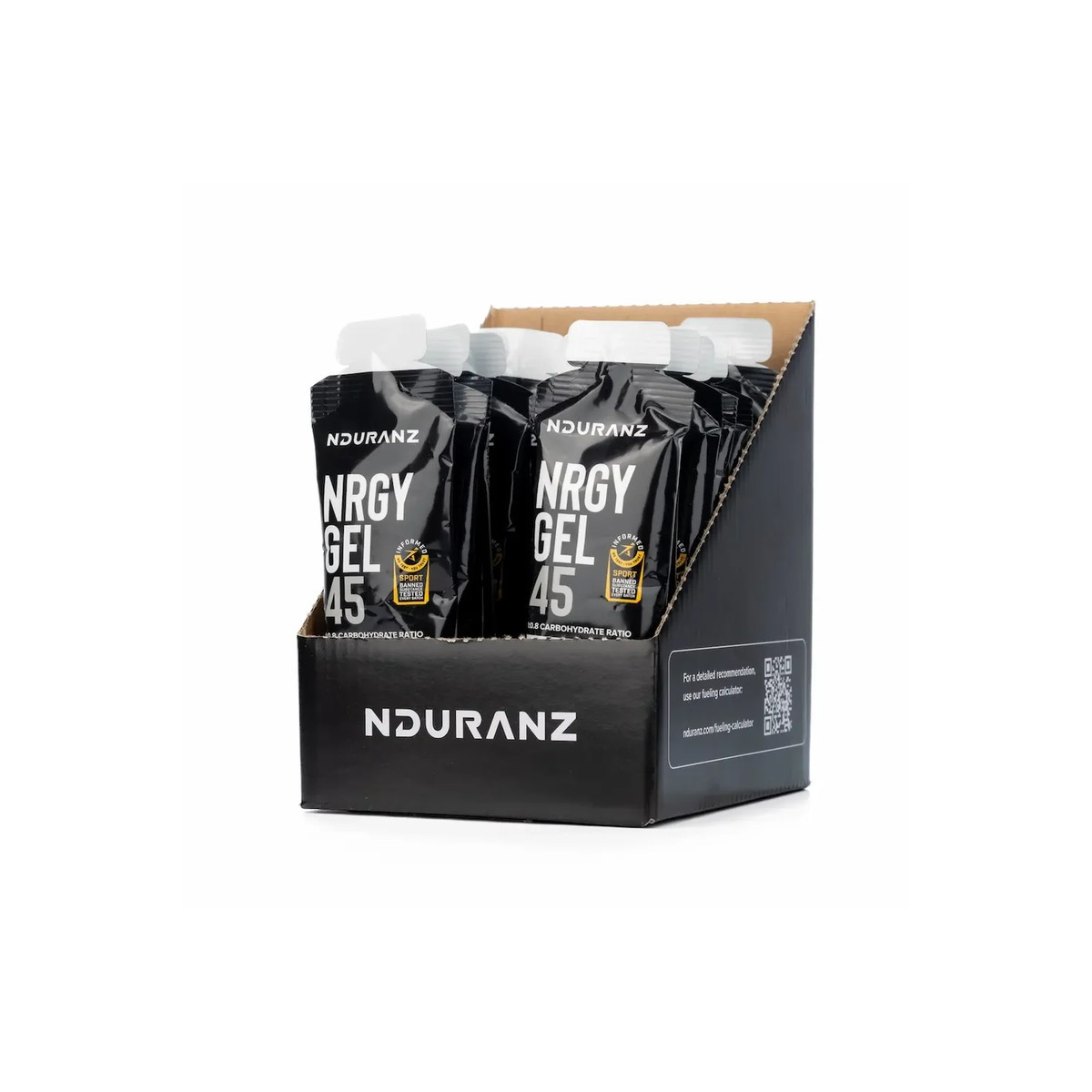 Tous les produits Nrgy contiennent 22,5, 45 ou 90 grammes de glucides par portion. Ces quantités standardisées permettent de combiner facilement les produits pour atteindre 90 grammes de glucides par heure.