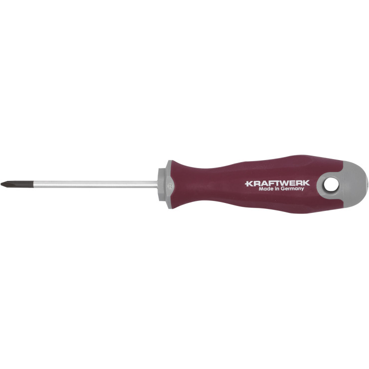 PRO LINE Tournevis cruciforme Phillipps - MADE IN GERMANY - Poignée ergonomique en gel/élastomère, conçu pour épouser la forme de la main - Poignée multi-composants - Grip doux, lisse et sans couture pour un confort maximal et une une friction minimale - Poignée avec conception anti-roulement - Trou sur la tête du tournevis - Symboles de vis sur la tête du tournevis.