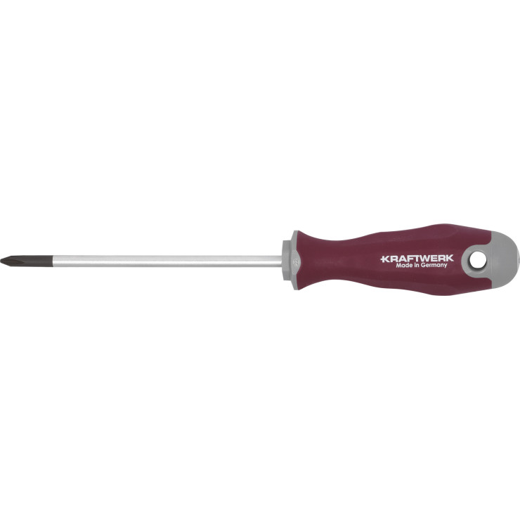 PRO LINE Tournevis cruciforme Phillipps - MADE IN GERMANY - Poignée ergonomique en gel/élastomère, conçu pour épouser la forme de la main - Poignée multi-composants - Grip doux, lisse et sans couture pour un confort maximal et une une friction minimale - Poignée avec conception anti-roulement - Trou sur la tête du tournevis - Symboles de vis sur la tête du tournevis.