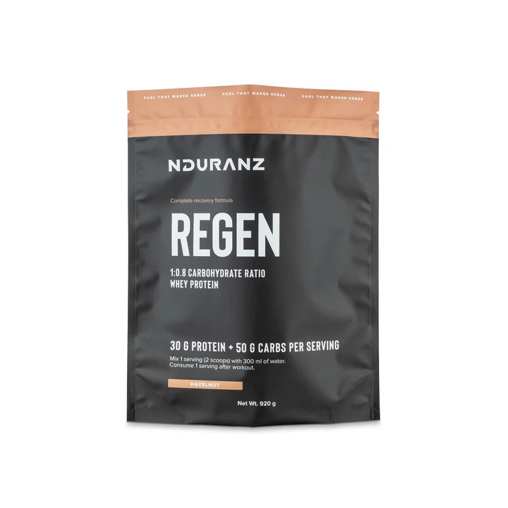Regen est une boisson de récupération scientifiquement prouvée qui contient 30 g de protéines de lactosérum, 50 g de glucides et 282 mg de sodium.