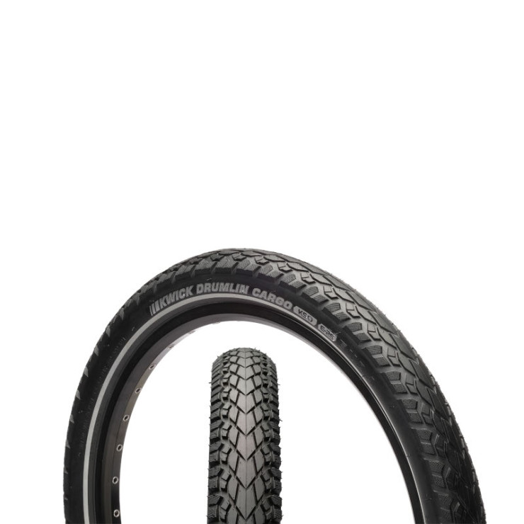 Le Kwick Drumlin Cargo a été spécialement conçu pour les vélos électriques cargo. Sa construction spéciale à 4 plis et sa protection anti-crevaison sous la bande de roulement lui confèrent une capacité de charge de 150 kg/pneu et une durabilité accrue.